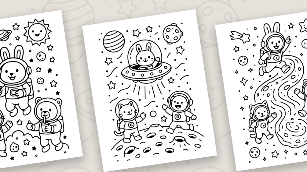 Print, color, and imagine your own epic journey through the stars with Captain Bunny and friends!