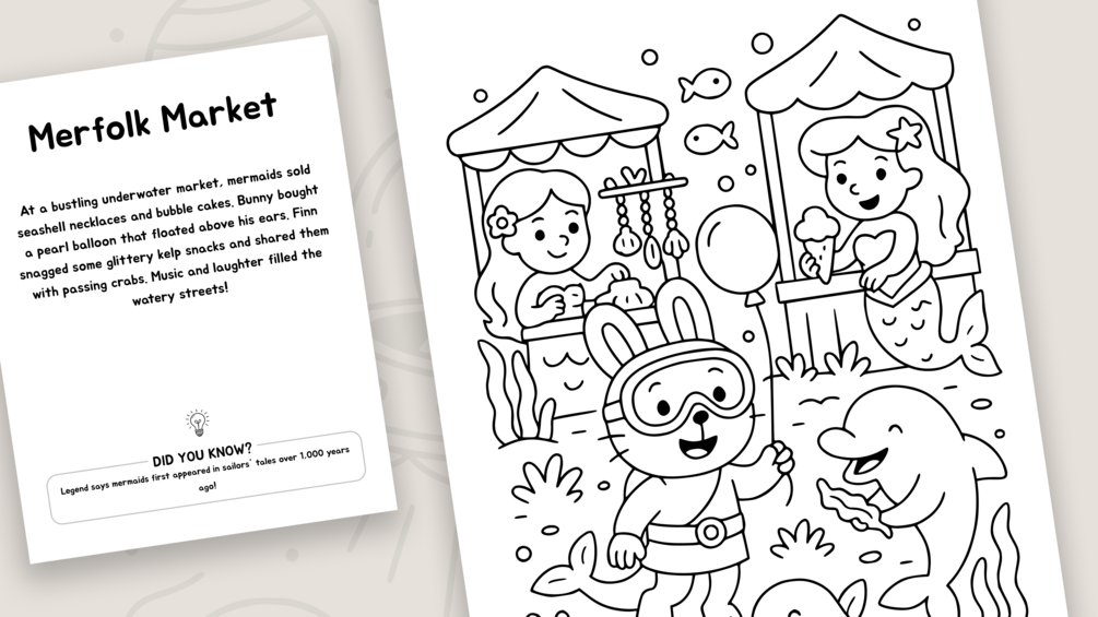Print, color, and set sail with Captain Bunny and Finn the Dolphin on a magical underwater adventure!